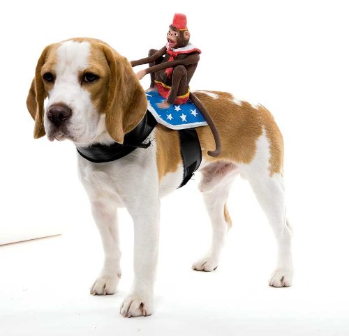 A monkey riding a dog? Now that's good entertainment! Watch the monkey's arms bounce while your dog's tail wags when you put our Dog Riders Monkey on your dog! Fits medium to large dogs, with a neck size up to 24" and a chest size up to 20" around.