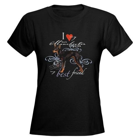 Show off your love for your Toy Manchester Terrier with this design of a Toy Manchester Terrier with the words, I heart my Toy Manchester Terrier, my best friend. Great gift for Toy Manchester lovers. Dog Tee, TShirt, Shirt. About our Women's Dark T-Shirt: Our 100% cotton women's tee is preshrunk, durable and guaranteed.5.6 oz. 100% cotton. Standard fit..